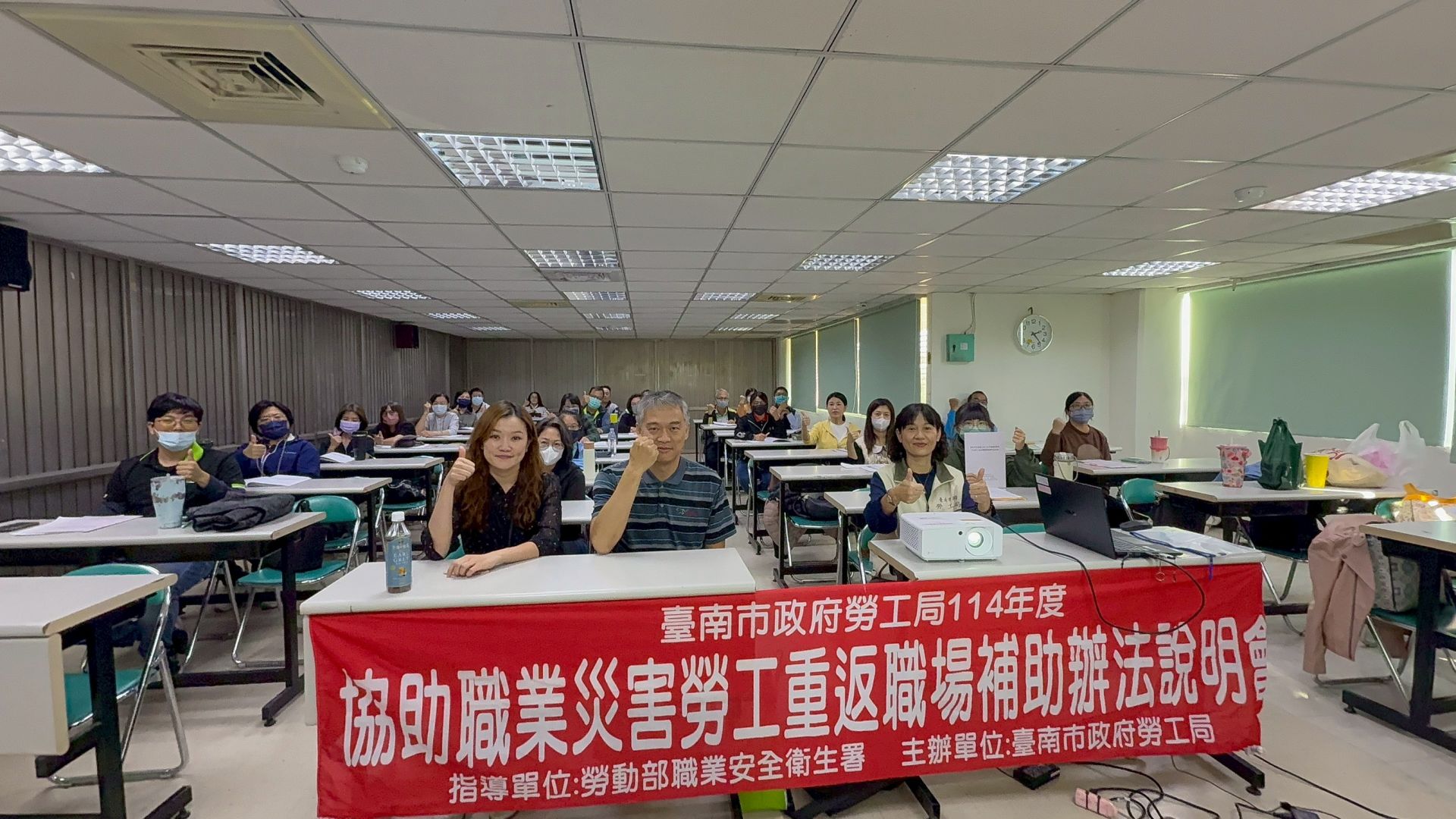 為推動職業災害勞工順利重返職場,臺南市政府勞工局今(17)日於南門育樂中心舉辦本年度最後一場「114年度職災勞工重返職場補助辦法說明會」,邀請企業與勞工共同參與,鼓勵善用政府補助資源,提升復工支持環境,實踐市長黃偉哲「希望家園」的施政願景。