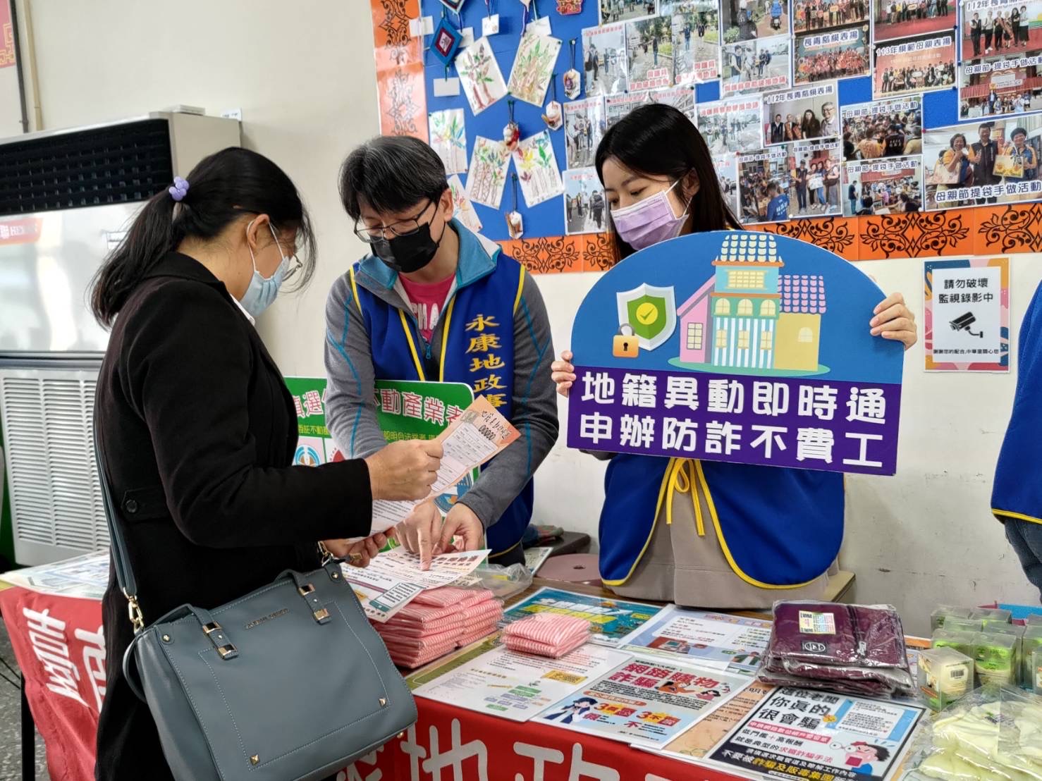 永康地政於該活動現場分享一則近期成功阻詐案例,今年初有一名年長婦人至地政事務所申請金額320萬房屋抵押權設定及預告登記,承辦人員主動關心其借貸用途,發現其說法涉及「海外親屬遭限制出境、急需資金解套」等典型詐騙話術,隨即通報警方共同協助查證。經耐心勸說後,該名婦人決定撤銷申請,成功避免財產損失;後續並協助民眾申辦「地籍異動即時通」,將自己及信任的親友手機設定為異動通知號碼,為不動產安全加上第二道防線。