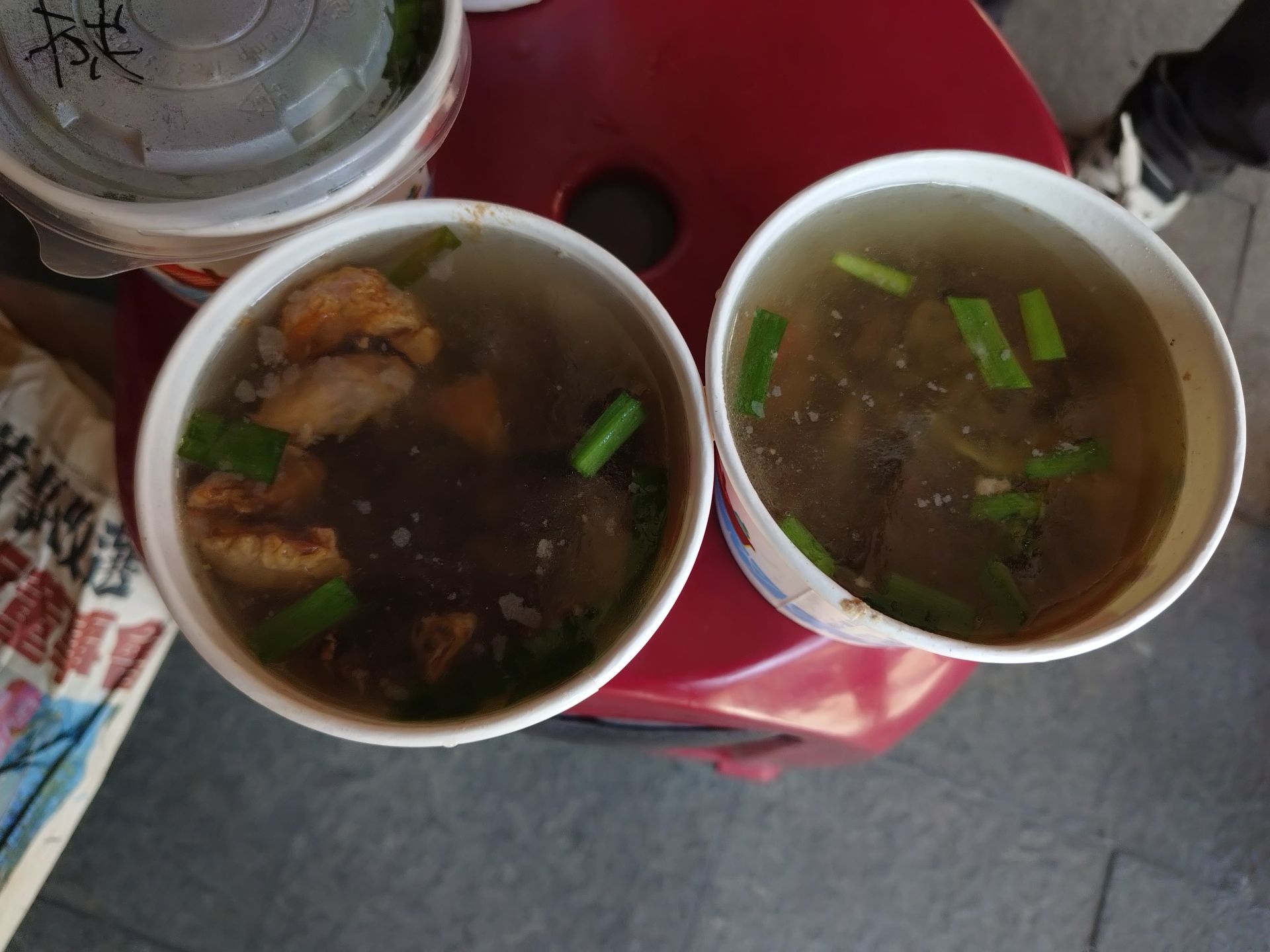 免洗餐具尚未普及化時,老婦人可辛苦了,不只肩挑大鍋豬血湯,還有碗筷湯匙,沿途叫賣,大家用過的餐具怎麼處理?遇見熟悉的親友或食客,就在他們家門口清洗,如此重覆再重覆,肩挑有限,那時候的豬血湯可是限量的。