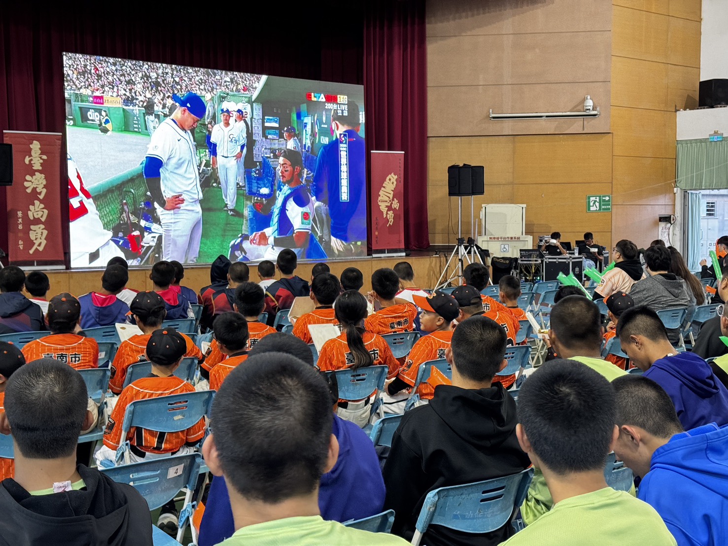 民進黨台南市黨部在農曆年前舉辦電影「冠軍之路」公益包場,邀請溪南、溪北,永康、麻豆、善化三級棒球與社區棒球小將後,今(6)天舉辦經典賽台日大戰大型直播活動,再次邀集善化高中、國中、國小與社區棒球隊,小將不僅身著棒球服為球員加油打氣,市民朋友也手舉啦啦棒現場應援,氣氛熱絡。